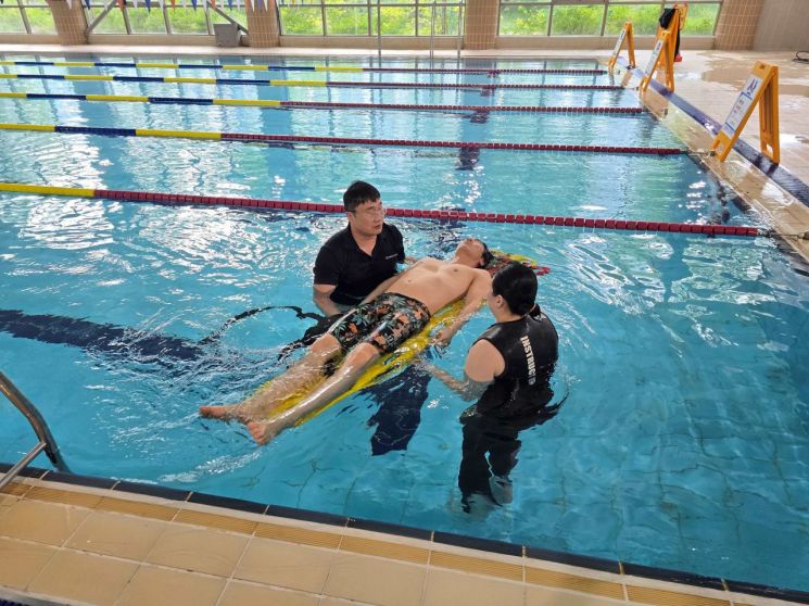 이어 다이빙 사고로 인한 경추 손상 상황을 가정해 환자의 추가 부상을 방지하기 위한 구조 및 고정 방법 등 응급처치 실습도 병행했다.
