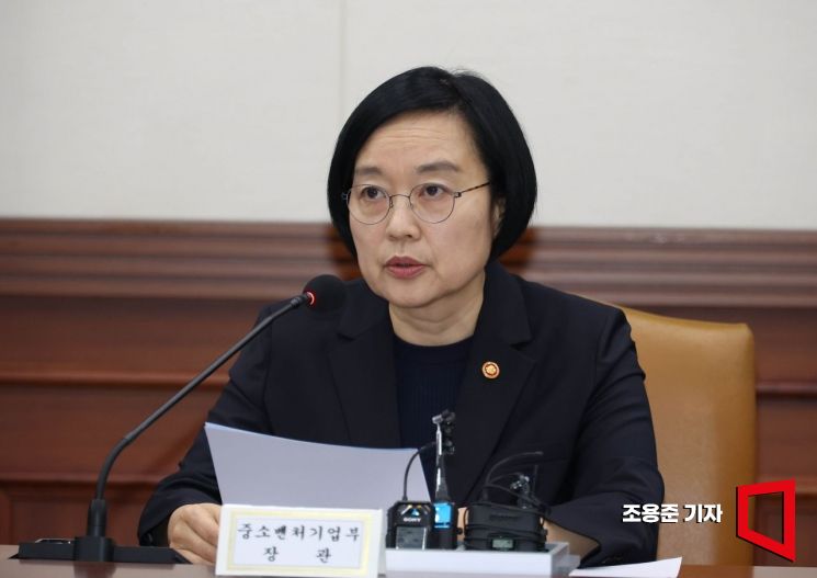 한성숙 중소벤처기업부 장관이 24일 서울 종로구 정부서울청사에서 열린 비상경제본부회의 겸 국가창업시대 전략회의에 참석해 발언하고 있다.