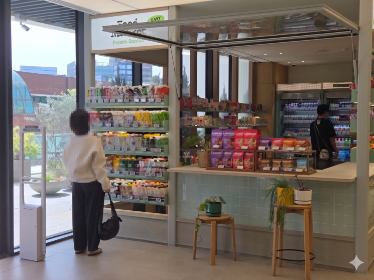 #지난 23일 오전 서울 성수동 올리브영N 매장 3층 한켠에는 알록달록한 파우치형 단백질 쉐이크가 촘촘하게 진열됐다. 30대 여성 고객이 진열대 앞에 서서 제품 여러 개를 꺼내 들고 앞뒤로 살펴보며 5분 정도 궁리하다가 '1+1' 제품을 손에 쥐고 걸어 나갔다. 올리브영 매장 직원은 "근처 직장인들이 한 끼 대용으로 사가는 경우가 꽤 많고, 외국인 관광객도 관심을 보인다"며 "주로 '1+1' 프로모션 중인 상품이 잘 나가는 편"이라고 설명했다.