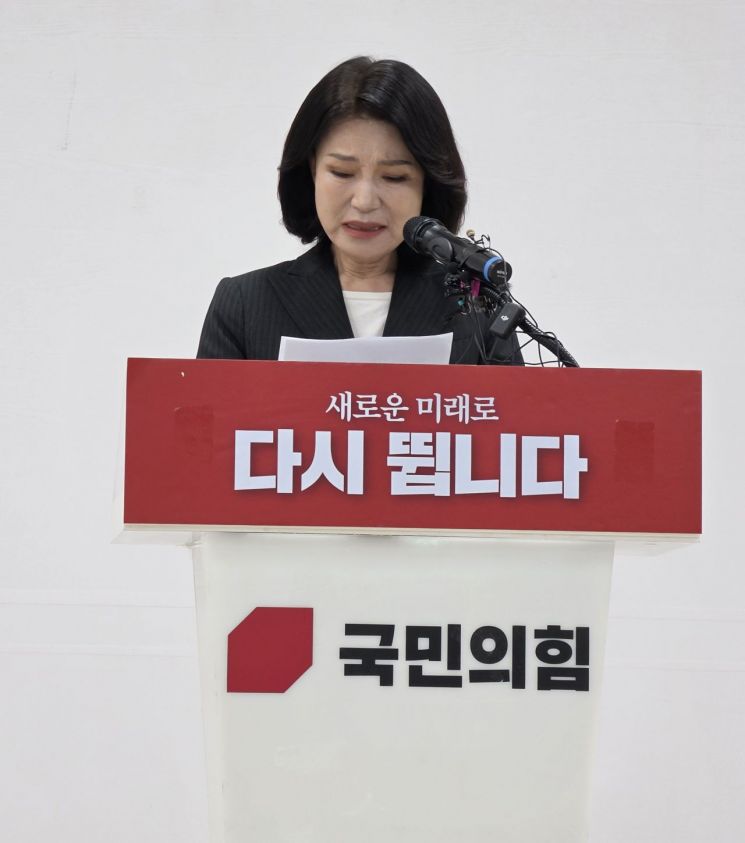 국민의힘 대구시장 공천에서 컷오프되자 무소속 출마 행보를 보여온 이진숙 전 방송통신위원장이 25일 국민의힘 대구시당 당사에서 연 기자회견에서 시장 선거 불출마를 선언하며 눈물을 흘리고 있다. 연합뉴스