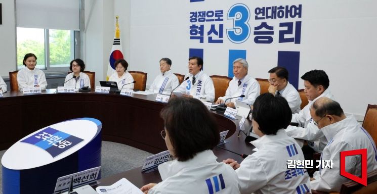 조국혁신당 중앙선거대책위원회 상임위원장이자 경기 평택 을 국회의원 재선거에 출마하는 조국 대표가 27일 국회에서 열린 1차 선대위 회의에서 발언하고 있다.