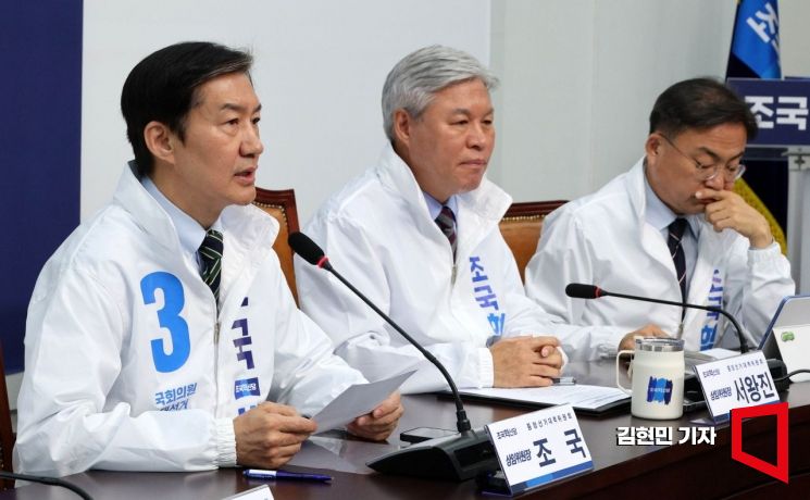 조국혁신당 중앙선거대책위원회 상임위원장이자 경기 평택 을 국회의원 재선거에 출마하는 조국 대표가 27일 국회에서 열린 1차 선대위 회의에서 발언하고 있다.