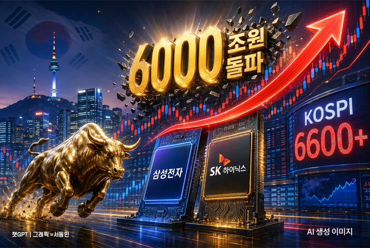 불장이 이어지면서 우리 증시 규모가 사상 처음으로 6000조원을 넘어섰다. 증시 투톱인 삼성전자와 SK하이닉스의 주가 상승이 이어지면서 코스피는 장 중 처음으로 6600포인트를 넘겼다.