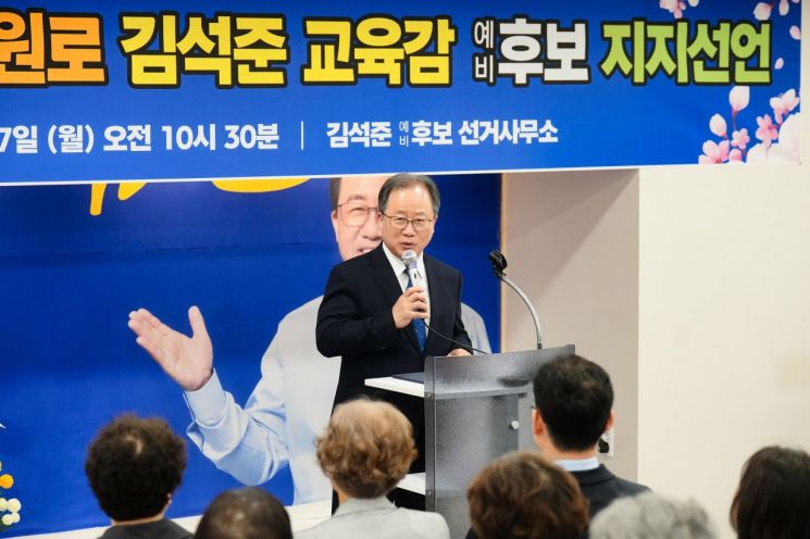 또 "김석준 후보는 교육감 재임 9년 동안 다행복학교, 메이커교육, 블렌디드 러닝 등을 통해 미래교육 기반을 다져온 검증된 인물"이라며 "교육복지와 인성교육, 교육환경 개선에서도 의미 있는 성과를 거둔 만큼 교육 대전환 시대를 이끌 적임자"라고 평가했다.