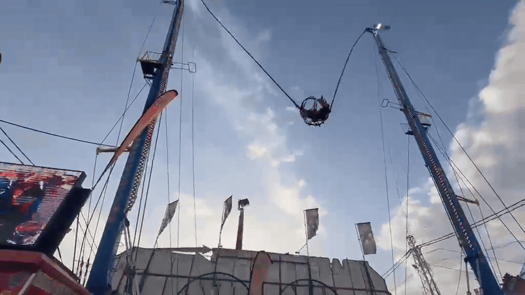 지난 25일(현지시간) 더선 등 외신 보도에 따르면, 전날 스페인 세비야에서 열린 봄 축제에선 슬링샷(새총) 형태 놀이기구 '스틸 맥스'가 세워졌다. 이 놀이기구는 탄성을 갖춘 케이블을 이용해 2인승 캡슐을 약 90m 상공까지 시속 160㎞로 쏘아 올리는 방식으로 작동한다. 탑승자는 순간적으로 최대 5G의 중력 가속도를 느끼며 상승의 끝에서 잠깐 무중력에 가까운 상태를 체험한 뒤 반동으로 다시 하강한다.
