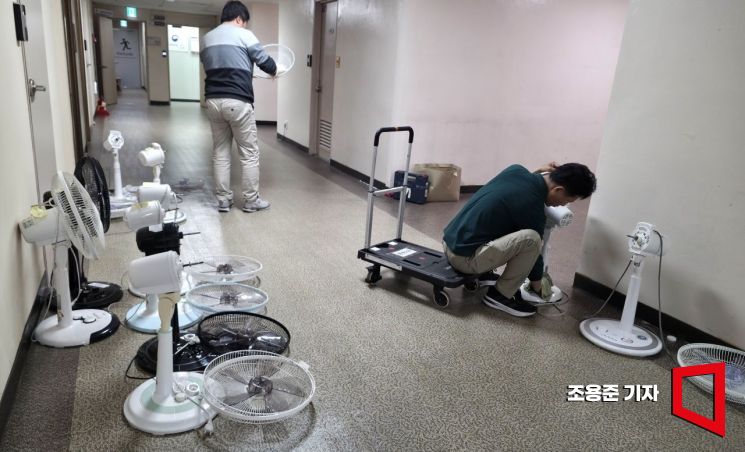 4월에 초여름 날씨가 이어지자 정부서울청사에서 겨우내 보관해둔 선풍기를 꺼내 놓고 서둘러 여름맞이 청소를 하는 손길이 분주하다. 올해는 또 얼마나 더울지 벌써부터 걱정이다. 조용준 기자