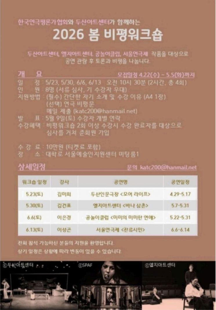 연극평론가협회, 봄 비평 워크숍 참가자 모집