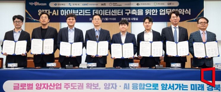 경북 구미시는 지난 27일 경북도청에서 경상북도, ㈜SDT, 구미전자정보기술원, 모빌린트, Anyon Technologies, ㈜마키나락스, ㈜I-ESG, LS증권 등 기술·투자·행정 분야 9개 핵심 기관과 「양자·AI 하이브리드 데이터센터 구축을 위한 업무협약(MOU)」을 체결했다.