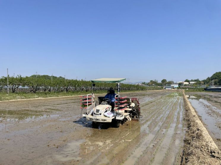이번에 심은 품종은 밥맛이 우수한 '해담벼'로, 추석 전 조기 출하를 통해 농가 소득 증대에 기여할 것으로 보인다.