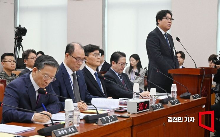 김성태 전 쌍방울 회장이 28일 국회 윤석열 정권 정치검찰 조작기소 의혹 사건 진상규명 국정조사특별위원회 제11차 전체회의에서 열린 종합 청문회에서 의원 질의에 답하고 있다.