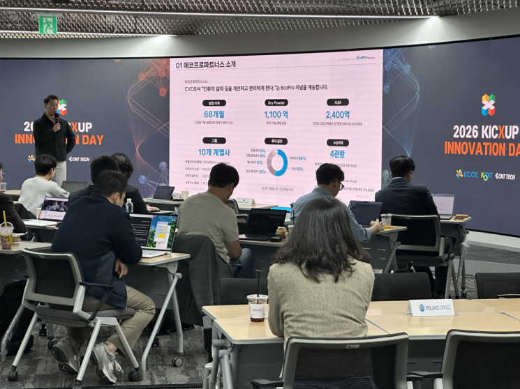 지난 13일 서울에서 개최된 ‘2026 KICXUP 이노베이션 데이’에서 수요기업이 스타트업 대상으로 자사의 현장 애로와 기술 수요에 대해 설명하고 있다. 한국산업단지공단