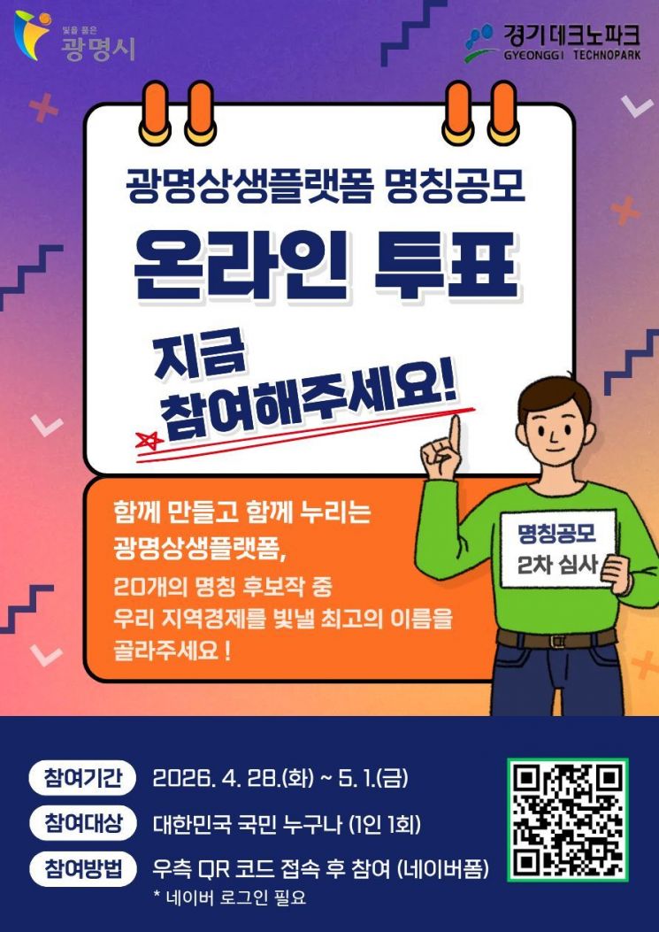 광명시청, 광명상생플랫폼), 경기테크노파크 누리집과 공식 사회관계망서비스(SNS) 채널에 게시된 링크를 통해 누구나 투표에 참여할 수 있다.