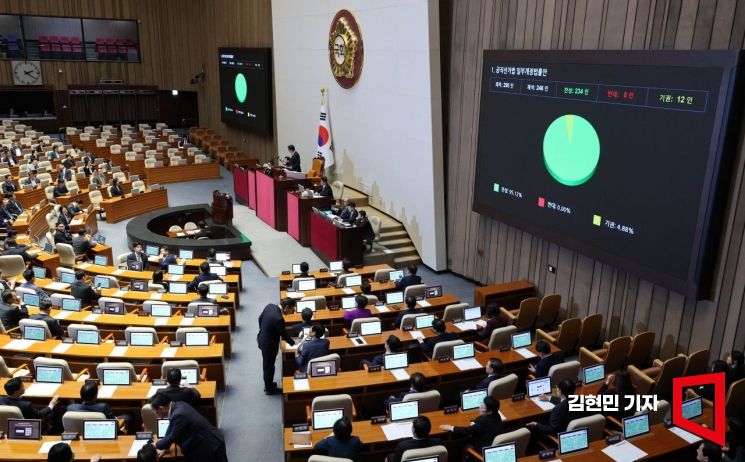 28일 국회에서 열린 4월 임시국회 8차 본회의에서 공직선거법 일부개정법률안이 통과되고 있다.