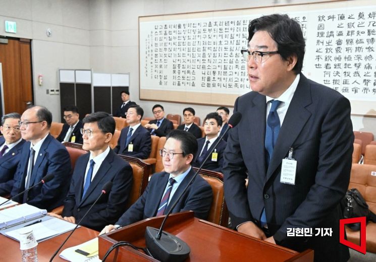 김성태 전 쌍방울 회장이 28일 국회 윤석열 정권 정치검찰 조작기소 의혹 사건 진상규명 국정조사특별위원회 제11차 전체회의에서 열린 종합 청문회에서 의원 질의에 답하고 있다. 2026.4.28 김현민 기자