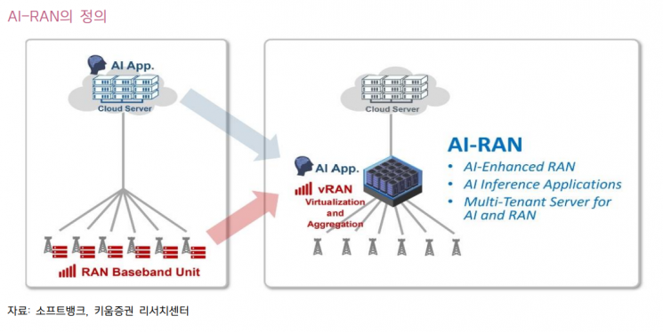 이같은 AI 인프라로 김 연구원은 'AI-RAN'을 먼저 꼽았다. AI-RAN은 AI 기능을 네트워크의 가장 밑단인 기지국에 직접 탑재하는 개념이다. 김 연구원은 "AI를 RAN 하드웨어 및 소프트웨어에 완벽하게 통합해 새로운 AI 기반 서비스와 수익 창출 기회를 제공할 뿐만 아니라 네트워크 활용도 및 스펙트럼 효율성, 성능을 획기적으로 향상시킬 수 있다"고 설명했다.