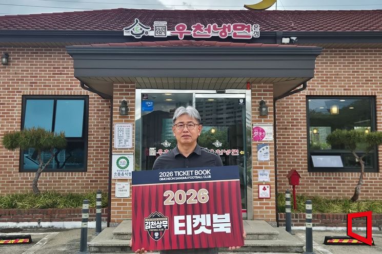 평소 축구에 대한 남다른 애정을 지닌 이 대표는 우천냉면 매장 내부에도 김천상무 MD를 진열할 만큼 구단을 향한 애정을 실천으로 이어오고 있다.