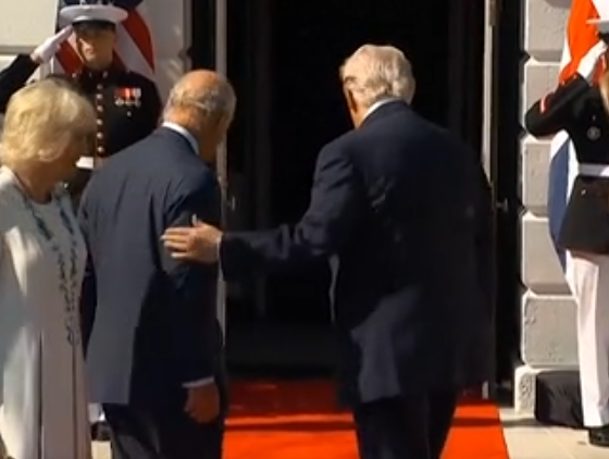 도널드 트럼프 미국 대통령이 미국을 국빈 방문 중인 찰스 3세 영국 국왕의 신체에 접촉하는 모습이 공개돼 논란이 일고 있다.