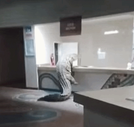 당시 상황을 촬영한 영상을 보면, 악어는 호텔 리셉션, 라운지를 지나 주방까지 이동했다. 주방 조리대에 오르기 위해 힘껏 발버둥을 치는 모습도 녹화됐다.