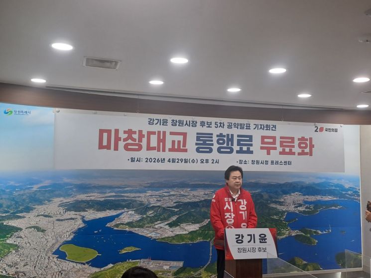 강 후보는 이날 창원시청에서 가진 제5차 공약 발표 기자회견에서 "단 1.7㎞를 지나기 위해 편도 2500원, 왕복 5000원이라는 전국 최고 수준의 통행료를 지난 18년간 묵묵히 견뎌왔다"며 "창원시에 주소를 둔 시민에 한하여 마창대교 통행료를 24시간 전면 무료화하겠다"고 밝혔다.