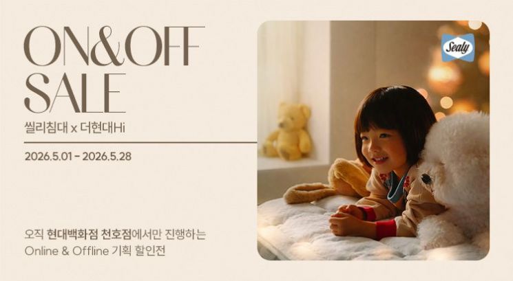 글로벌 프리미엄 매트리스 브랜드 씰리침대(대표 윤종효)는 5월 1일부터 31일까지 현대백화점 천호점과 현대백화점 온라인 통합 플랫폼 '더현대 하이'에서 '온앤오프(ON&OFF)' 프로모션을 진행한다고 30일 밝혔다.