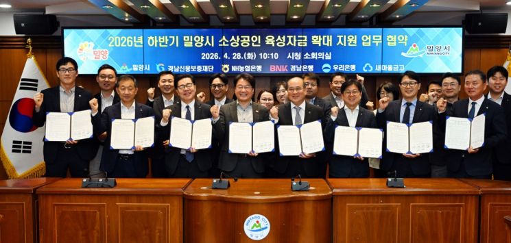 한편 BNK경남은행은 하반기 밀양시 소상공인 육성자금 업무협약과 별도로 지난 3월 경남신용보증재단과 '2026년 특별출연 업무협약'을 체결하고 지역 소기업·소상공인에 대한 유동성 지원 강화를 위해 경남신용보증재단에 50억원을 특별출연했다.