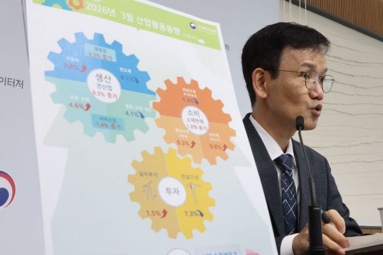 3월 생산·소비·투자 '트리플 증가'. 이두원 국가데이터처 경제동향통계심의관이 30일 세종시 정부세종청사에서 2026년 3월 산업활동 동향을 발표하고 있다. 연합뉴스