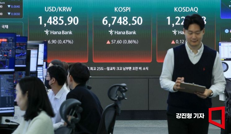 코스피 지수가 장중 최고치를 경신하며 나흘째 상승을 이어가고 있는 30일 서울 중구 하나은행 딜링룸 전광판에 국내증시 지수가 표시돼 있다.