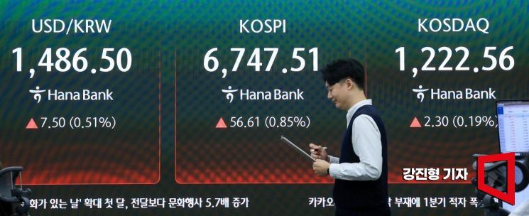 코스피 지수가 장중 최고치를 경신하며 나흘째 상승을 이어가고 있는 30일 서울 중구 하나은행 딜링룸 전광판에 국내증시 지수가 표시돼 있다.