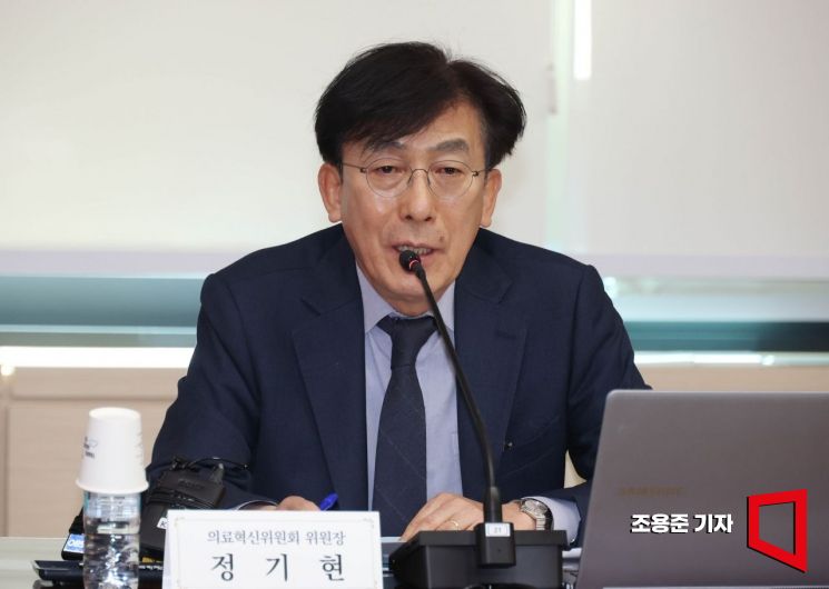 정기현 의료혁신위원장이 30일 서울 종로구 정부서울청사에서 열린 의료혁신위원회에 회의에 참석, 발언하고 있다.