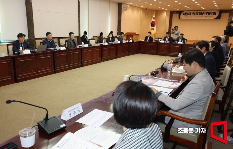 정기현 의료혁신위원장이 30일 서울 종로구 정부서울청사에서 열린 의료혁신위원회에 회의에 참석, 발언하고 있다.