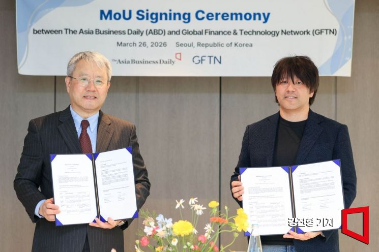 아시아경제는 26일 GFTN과 양사 간 전략적 파트너십 구축 및 디지털 자산 포럼 공동 개최를 위한 업무협약(MOU)을 체결했다. 협약식에는 GFTN 재팬 대표가 글로벌 GFTN을 대표해 참석했다.