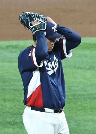 류현진이 13일(현지시간) 미국 플로리다주 마이애미 론디포파크에서 열린 도미니카공화국과의 월드베이스볼클래식(WBC) 8강전에서 2회말 3실점을 한 뒤 아쉬워하고 있다. 마이애미=연합뉴스