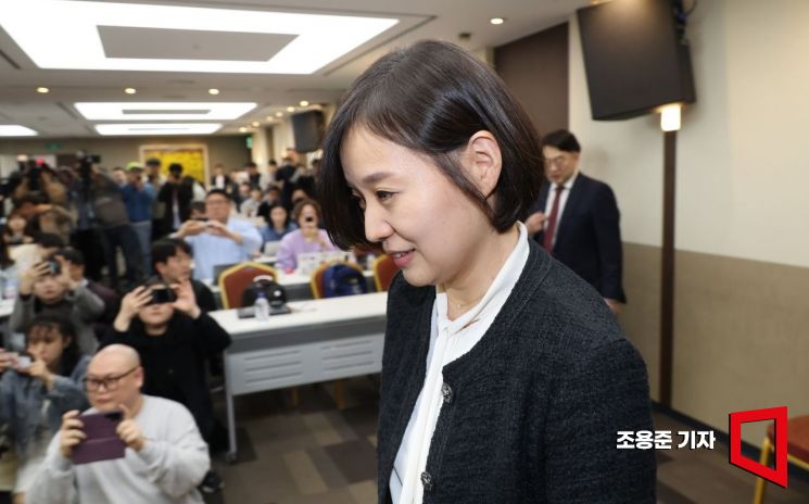 임주현 한미사이언스 사장이 25일 서울 송파구 한미타워에서 열린 기자회견에 입장하고 있다. 사진=조용준 기자 jun21@