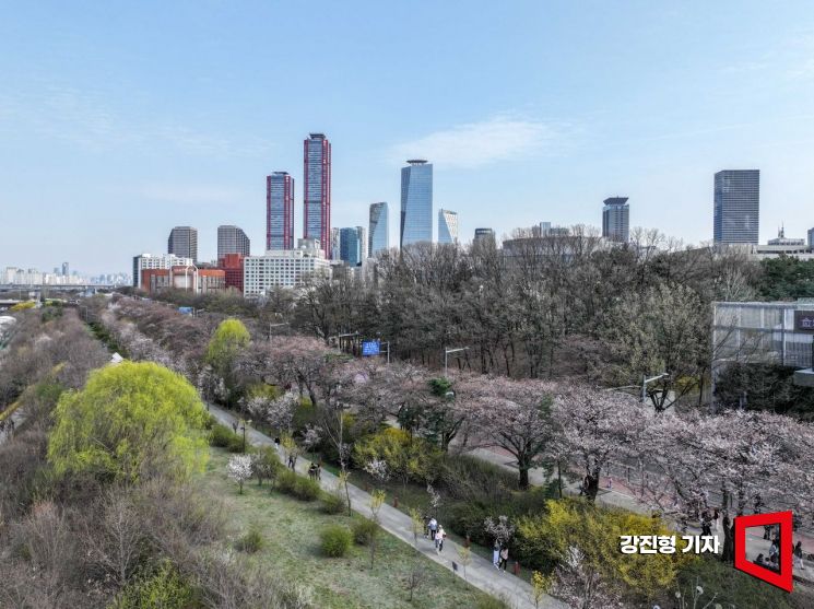 여의도 벚꽃축제가 이어지고 있는 1일 서울 여의도 윤중로에 벚꽃이 꽃봉오리를 터뜨리고 있다.