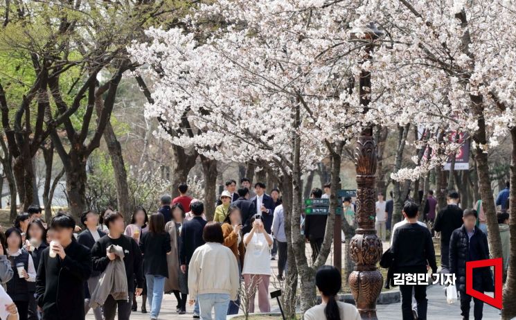 서울 낮기온이 23도까지 오르며 포근한 봄 날씨를 보인 2일 서울 여의도공원에서 시민들이 봄기운을 만끽하며 산책하고 있다. 사진=김현민 기자 kimhyun81@