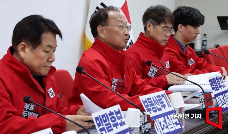 유일호 국민의힘 민생경제특위 공동위원장이 3일 서울 여의도 중앙당사에서 열린 중앙선거대책위원회의에서 발언하고 있다. 사진=김현민 기자 kimhyun81@