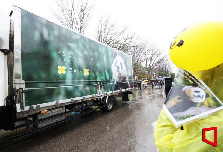 3일 오전 경기도 용인시 에버랜드에서 시민들이 중국으로 떠나는 푸바오를 싣고 있는 무진동 특수 차량을 보며 배웅하고 있다. 사진=사진공동취재단