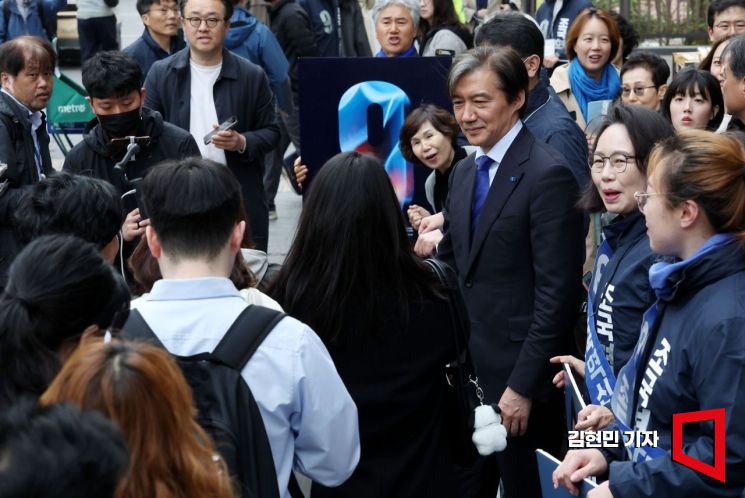 조국 조국혁신당 대표가 4일 서울 여의도역 인근에서 시민들에게 출근길 인사를 하고 있다. 사진=김현민 기자 kimhyun81@