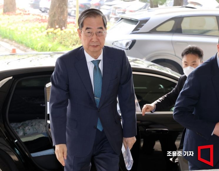 사의를 밝힌 한덕수 국무총리가 12일 서울 종로구 정부서울청사에 출근하고 있다. 사진=조용준 기자 jun21@