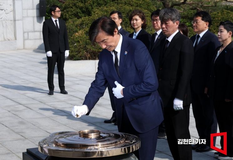 [포토] 현충탑에 분향하는 조국 대표