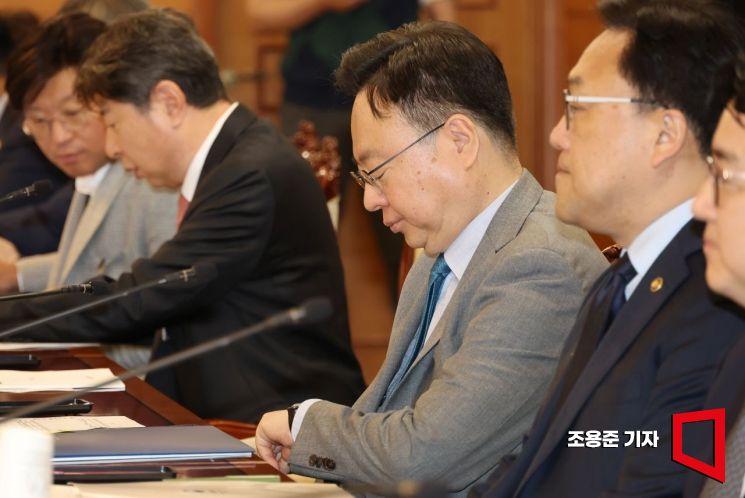 조규홍 보건복지부 장관이 10일 서울 종로구 정부서울청사에서 열린 제2차 의료개혁특별위원회 회의에 참석해 시계를 보고 있다. 사진=조용준 기자 jun21@