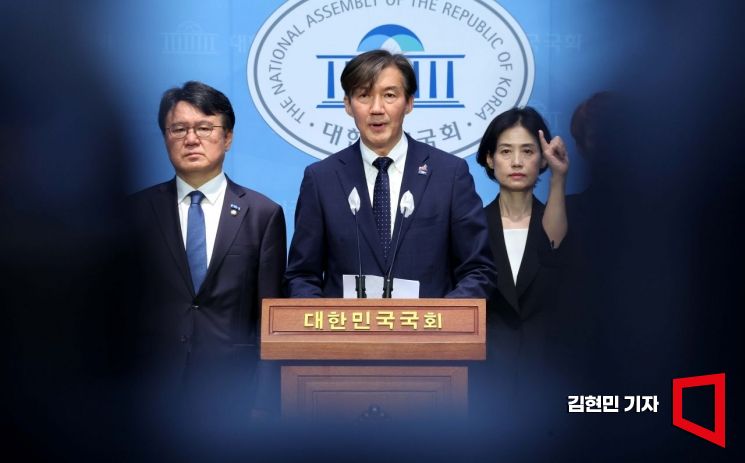 조국 조국혁신당 대표가 17일 국회 소통관에서 기자회견을 열고 국회 개헌특위 설치 및 제7공화국 개헌 제안을 하고 있다. 사진=김현민 기자 kimhyun81@