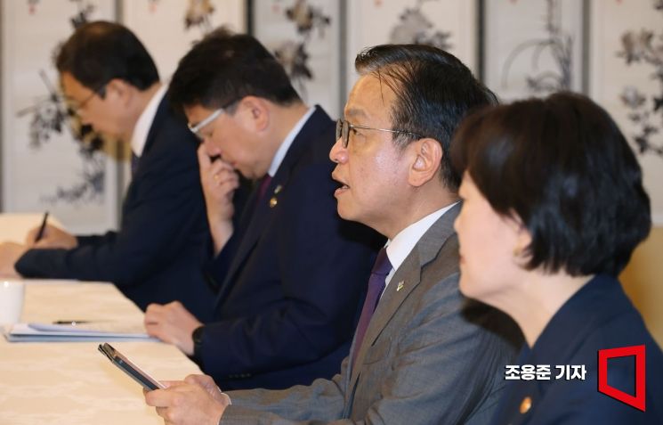 최상목 경제부총리 겸 기획재정부 장관이 4일 서울 종로구 정부서울청사에서 열린 물가관계장관회의에 참석, 농산물 및 식품, 외식 가격 동향 및 대응방안에 대해 발언하고 있다. 사진=조용준 기자 jun21@