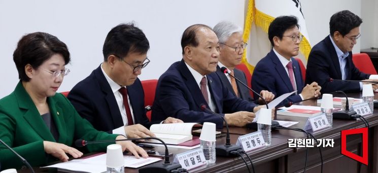 황우여 국민의힘 비상대책위원장이 4일 서울 여의도 당사에서 열린 당헌당규개정특위 임명장 수여식 및 1차 회의에서 발언하고 있다. 사진=김현민 기자 kimhyun81@