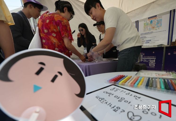 21일 서울 중구 청계광장에서 열린 2024 통일문화행사 '통하나 봄'을 찾은 시민들이 통일문화 관련 부스에서 다양한 체험을 하고 있다. 사진=조용준 기자 jun21@