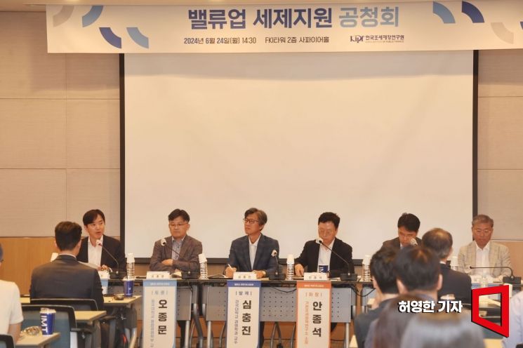 한국조세재정연구원에서 주최한 밸류업 세제지원 공청회가 24일 서울 FKI타워에서 열렸다. 안종석 가온조세연구소 소장을 좌장으로 '밸류업을 위한 상속세제 지원안' 토론이 진행되고 있다.