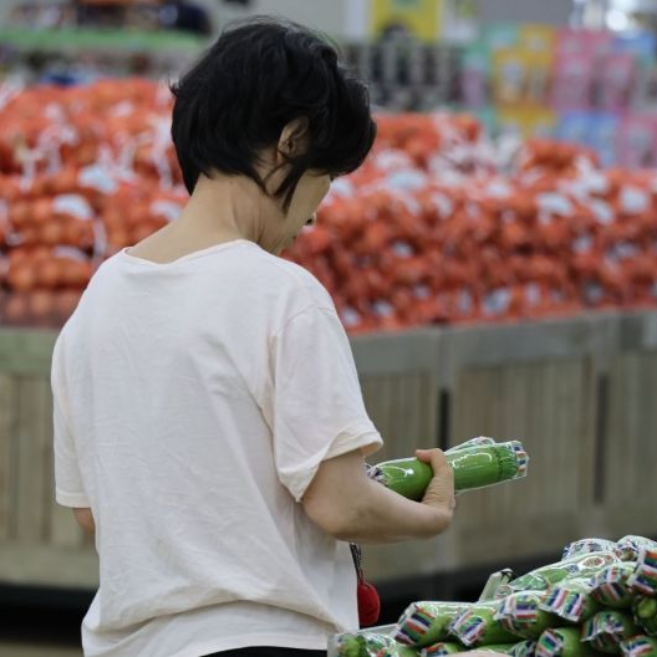 긴장마로 인해 오이, 애호박, 청상추, 깻잎 등 채소값이 폭등하면서 밥상물가에 비상이 걸린 18일 서울 양재의 대형마트를 찾은 시민들이 채소를 둘러보고 있다. 사진=조용준 기자 jun21@