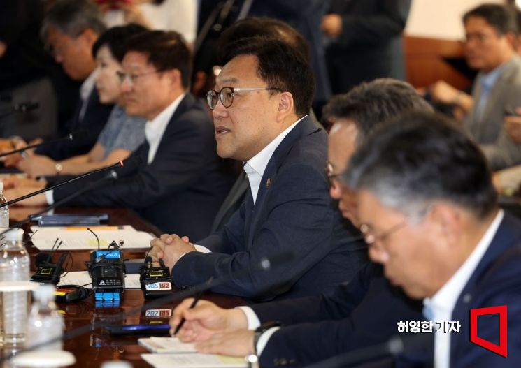 김병환 금융위원장과 시중 은행장들의 간담회가 20일 서울 은행회관에서 열렸다. 김 위원장이 인사말을 하고 있다.