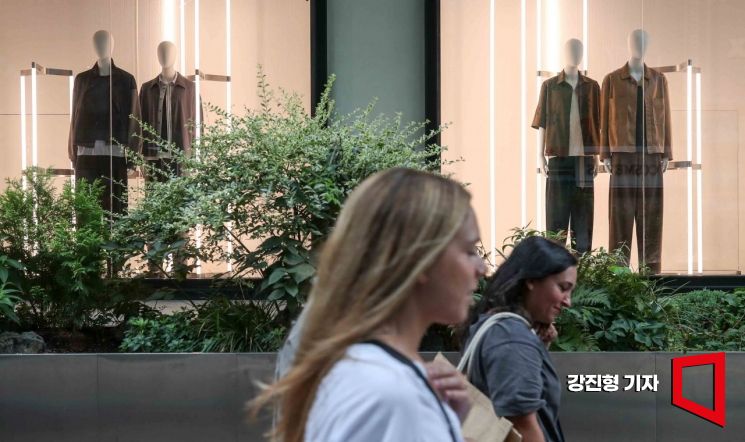 절기상 더위가 그친다는 처서가 지난 가운데 27일 서울 한 백화점 외벽에 가을 옷이 전시돼 있다.