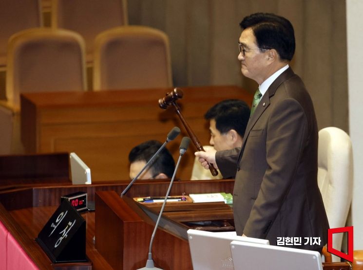 우원식 국회의장이 28일 국회에서 열린 본회의에서 의사봉을 두드리고 있다. 사진=김현민 기자 kimhyun81@